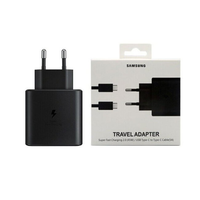 מטען מקורי 45W Samsung הכולל כבל USB Type C ל USB Type C בצבע שחור