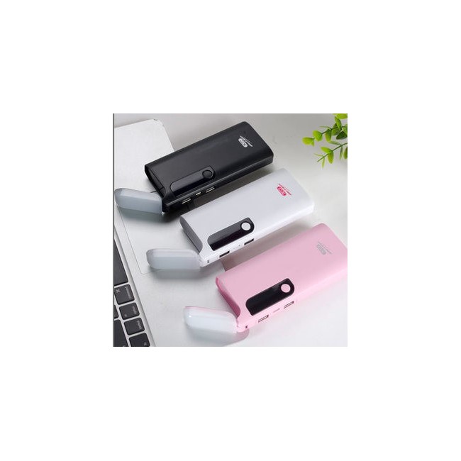 POWER BANK נייד בעל סוללת ליטיום בנפח 15,000mA. המטען בעל 2 יציאות USB 2A צג LCD המראה קיבולת הסוללה. כולל פנס מובנה