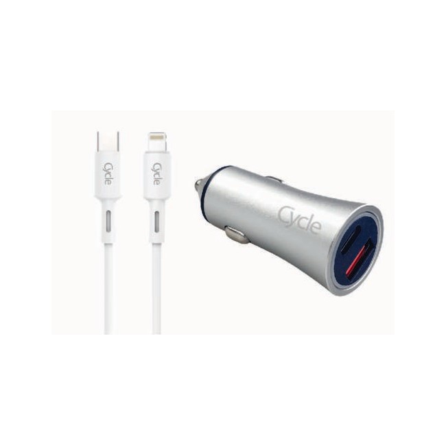 מטען רכב+כבל אייפון Cycle CYCPD PD+QC3.0 36W