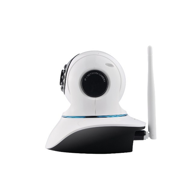 מצלמת רשת Plug&Veiw אלחוטית עם לדים אינפרא אדום ממונעת (למעלה למטה 120°, ימינה ושמאלה 335°), עדשה 3.6 מ"מ.