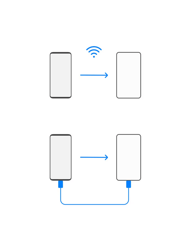 שירות העתקת נתונים מסמרטפון לסמרטפון חדש שנרכש בחנות.